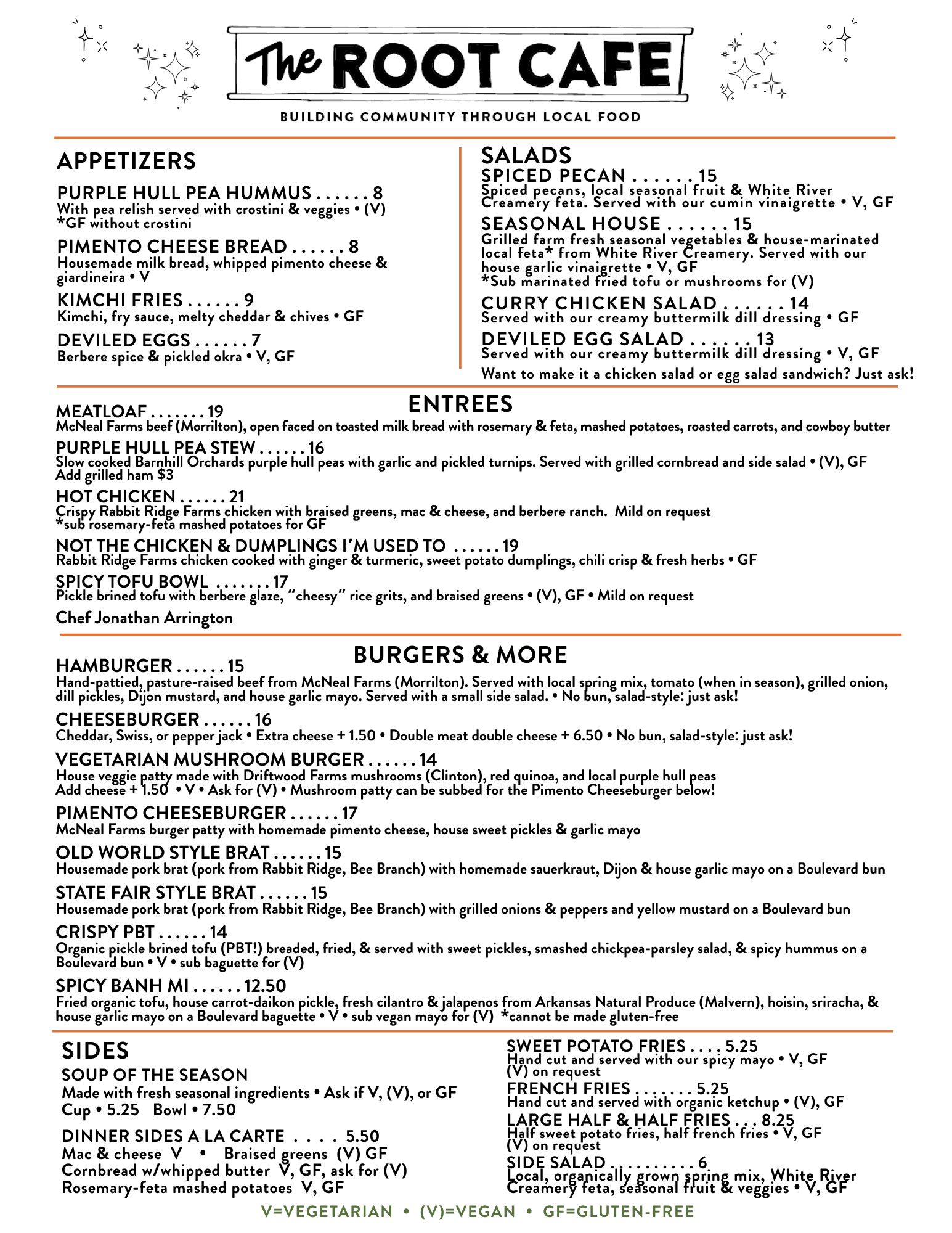 Nestled on a corner lot in the heart of Little Rock, The Root Cafe at SoMa first opened its doors in 2011 with one mission in mind: to Build Community Through Local Food. Now over a decade later, we’ve expanded and transformed into a place of great food and good connections. With over 77% of our food and beverage costs being locally sourced, we’re able to offer classic and seasonal farm-to-table menu items that make you feel good about what you’re eating and where it came from. Come visit us today to see what we’re all about!